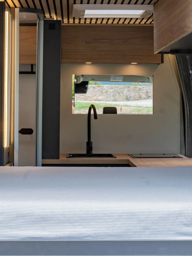 I nostri van nascono per unire due mondi: la libertà della strada e il comfort di una suite. Linee pulite, boiserie in legno chiaro, arredi su misura, luci calde a LED. Spazi compatti ma pensati con intelligenza, dove ogni dettaglio ha una funzione e un’estetica. È van life, ma con un’anima homey. Moderna. Curata.